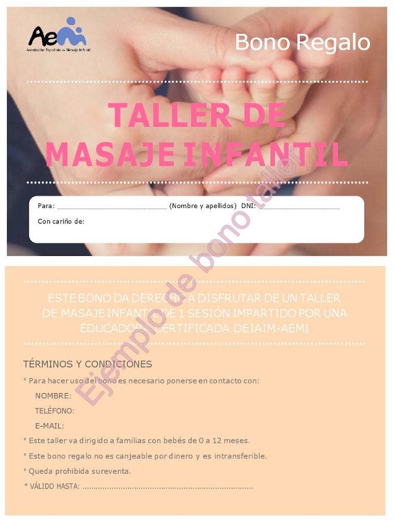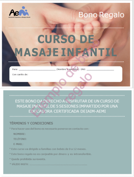 Cursos y talleres de masaje infantil del programa de la Asociación Internacional de Masaje Infantil, representados en España por la Asociación Española de Masaje Infantil (AEMI).
